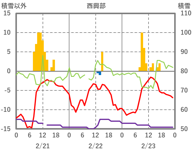 | 日 | 時 | 気温 | 降水 | 風向/風速 | 日照 | 積雪 | 降雪 |