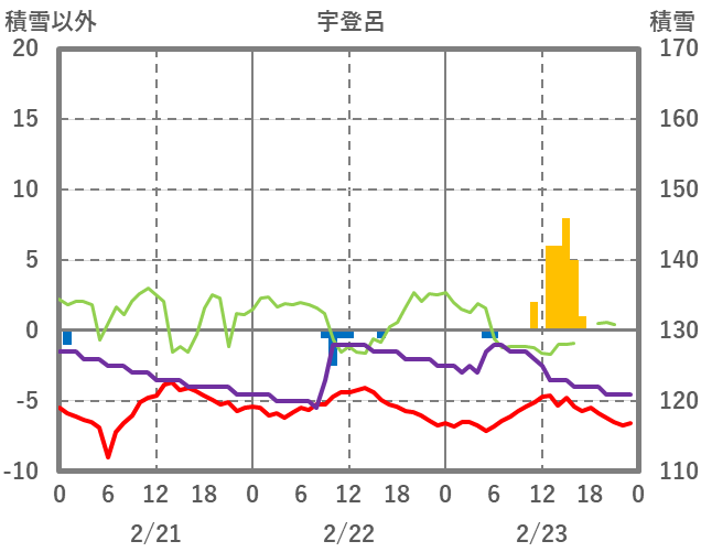 | 日 | 時 | 気温 | 降水 | 風向/風速 | 日照 | 積雪 | 降雪 |