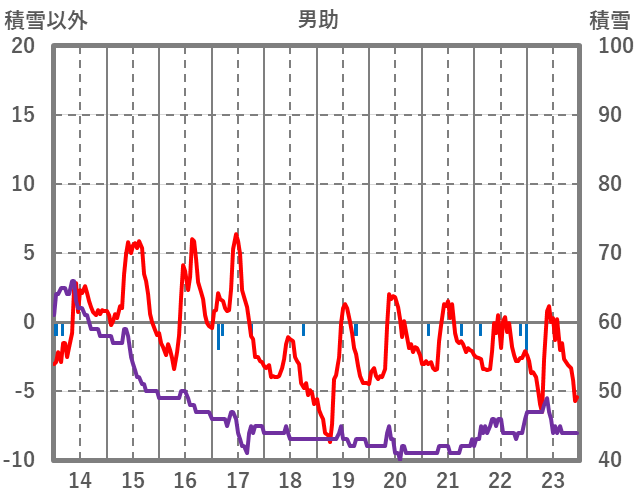 | 日 | 時 | 気温 | 降水 | 風向/風速 | 日照 | 積雪 | 降雪 |