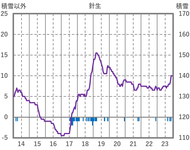 | 日 | 時 | 気温 | 降水 | 風向/風速 | 日照 | 積雪 | 降雪 |