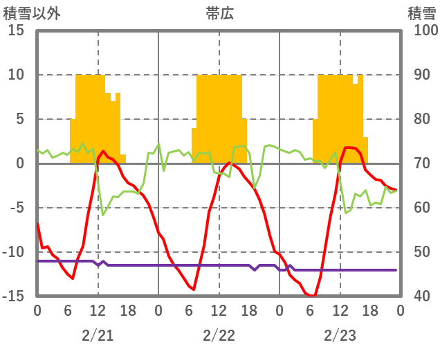| 日 | 時 | 気温 | 降水 | 風向/風速 | 日照 | 積雪 | 降雪 |