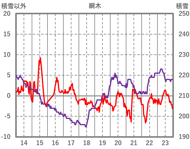 | 日 | 時 | 気温 | 降水 | 風向/風速 | 日照 | 積雪 | 降雪 |