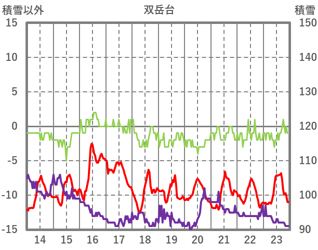 | 日 | 時 | 気温 | 降水 | 風向/風速 | 日照 | 積雪 | 降雪 |
