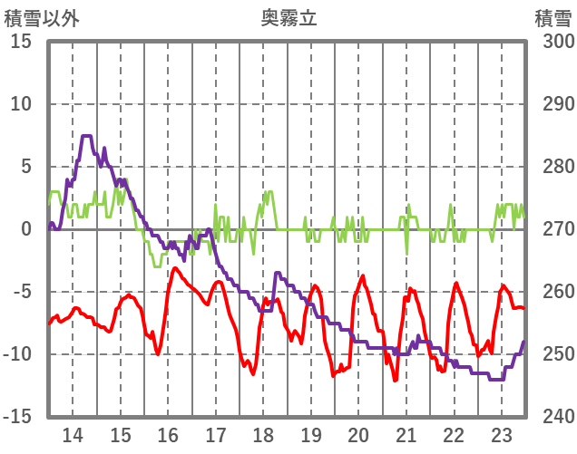 | 日 | 時 | 気温 | 降水 | 風向/風速 | 日照 | 積雪 | 降雪 |