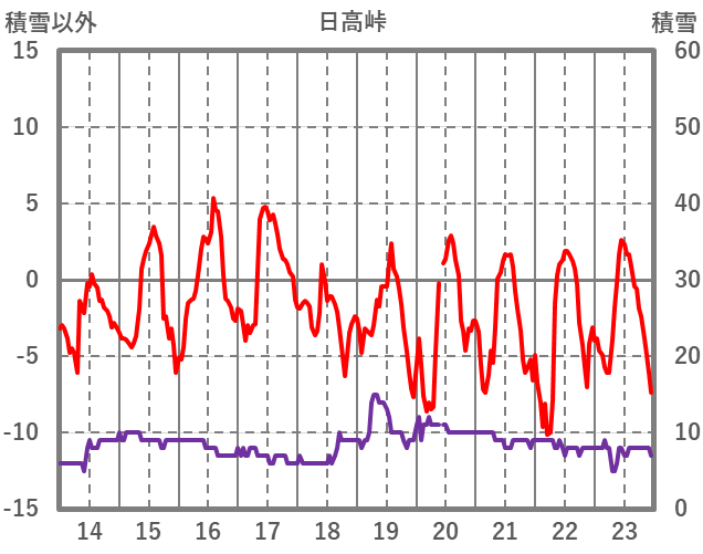 | 日 | 時 | 気温 | 降水 | 風向/風速 | 日照 | 積雪 | 降雪 |