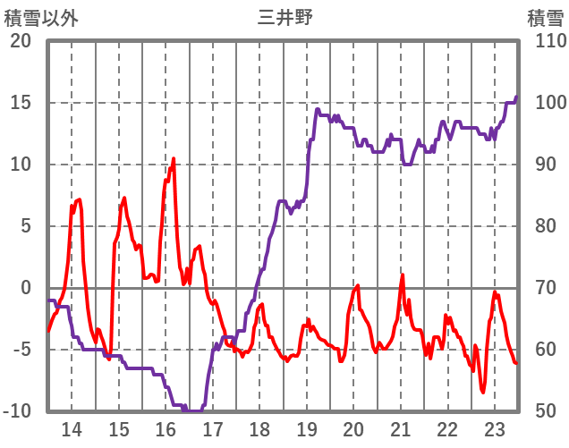| 日 | 時 | 気温 | 降水 | 風向/風速 | 日照 | 積雪 | 降雪 |