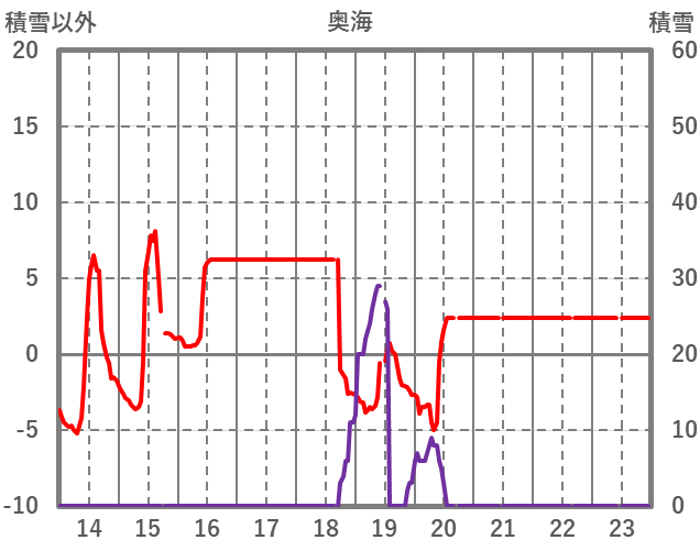 | 日 | 時 | 気温 | 降水 | 風向/風速 | 日照 | 積雪 | 降雪 |