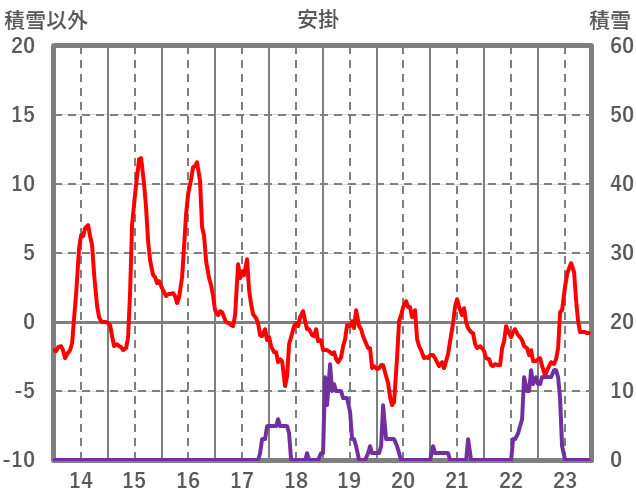 | 日 | 時 | 気温 | 降水 | 風向/風速 | 日照 | 積雪 | 降雪 |