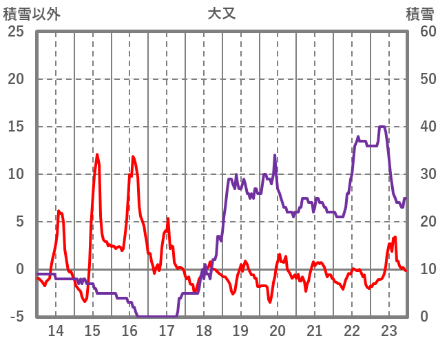| 日 | 時 | 気温 | 降水 | 風向/風速 | 日照 | 積雪 | 降雪 |