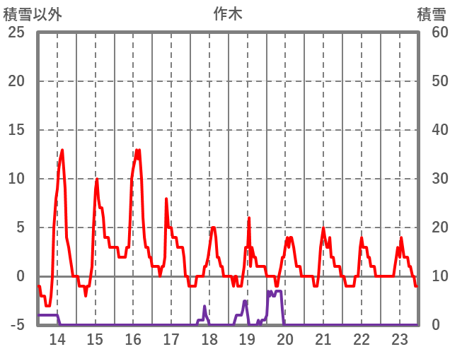| 日 | 時 | 気温 | 降水 | 風向/風速 | 日照 | 積雪 | 降雪 |