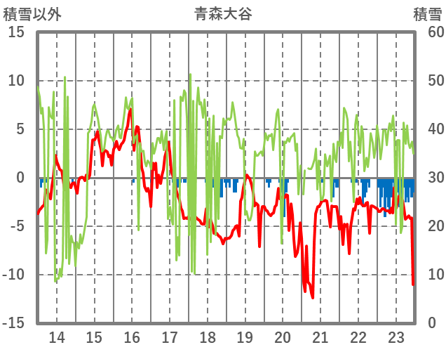 | 日 | 時 | 気温 | 降水 | 風向/風速 | 日照 | 積雪 | 降雪 |