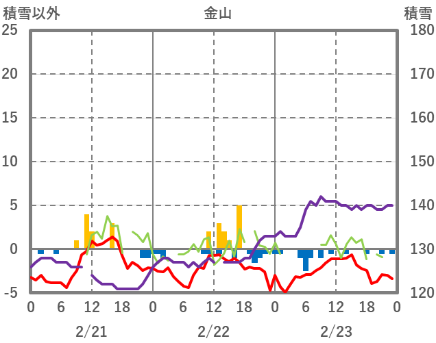 | 日 | 時 | 気温 | 降水 | 風向/風速 | 日照 | 積雪 | 降雪 |