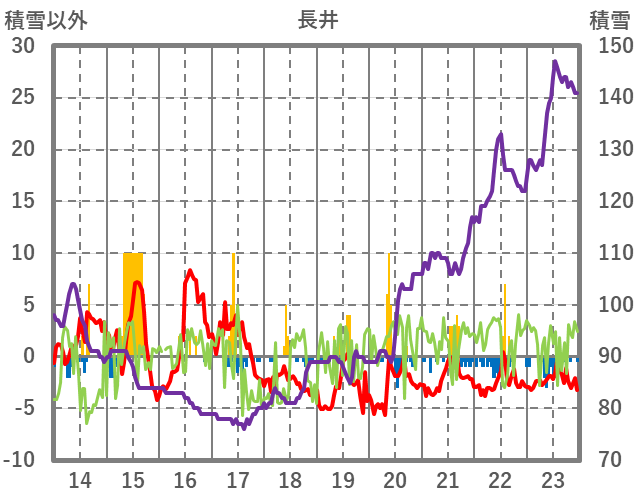 | 日 | 時 | 気温 | 降水 | 風向/風速 | 日照 | 積雪 | 降雪 |