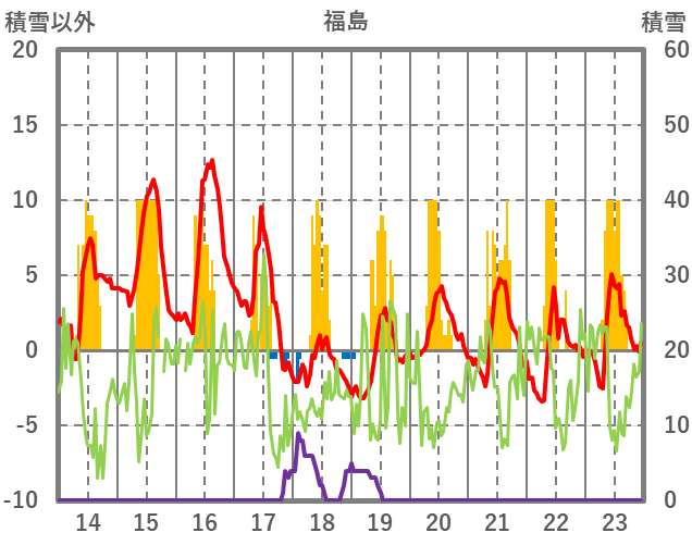 | 日 | 時 | 気温 | 降水 | 風向/風速 | 日照 | 積雪 | 降雪 |