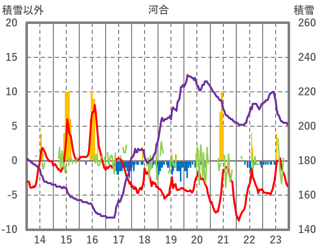 | 日 | 時 | 気温 | 降水 | 風向/風速 | 日照 | 積雪 | 降雪 |