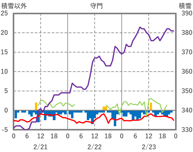 | 日 | 時 | 気温 | 降水 | 風向/風速 | 日照 | 積雪 | 降雪 |