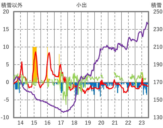 | 日 | 時 | 気温 | 降水 | 風向/風速 | 日照 | 積雪 | 降雪 |