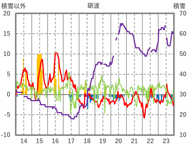| 日 | 時 | 気温 | 降水 | 風向/風速 | 日照 | 積雪 | 降雪 |