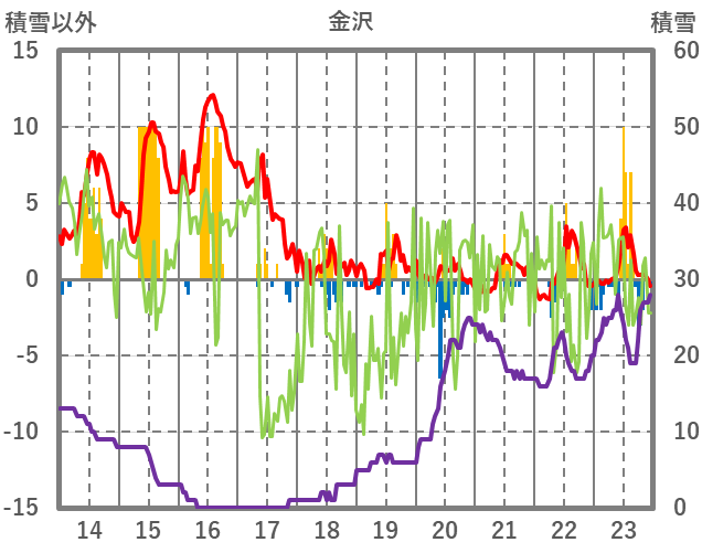 | 日 | 時 | 気温 | 降水 | 風向/風速 | 日照 | 積雪 | 降雪 |