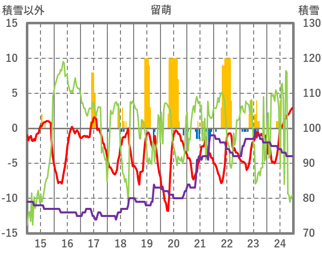| 日 | 時 | 気温 | 降水 | 風向/風速 | 日照 | 積雪 | 降雪 |