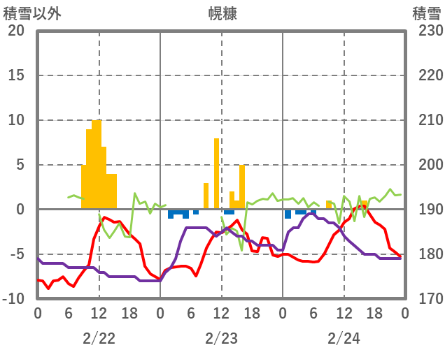 | 日 | 時 | 気温 | 降水 | 風向/風速 | 日照 | 積雪 | 降雪 |