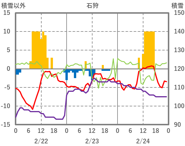 | 日 | 時 | 気温 | 降水 | 風向/風速 | 日照 | 積雪 | 降雪 |