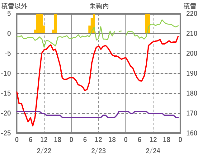 | 日 | 時 | 気温 | 降水 | 風向/風速 | 日照 | 積雪 | 降雪 |