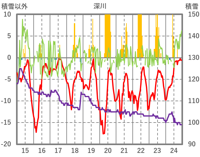 | 日 | 時 | 気温 | 降水 | 風向/風速 | 日照 | 積雪 | 降雪 |