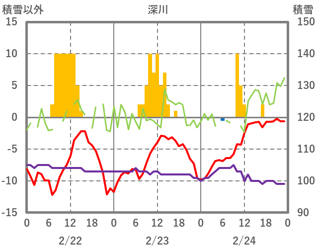 | 日 | 時 | 気温 | 降水 | 風向/風速 | 日照 | 積雪 | 降雪 |