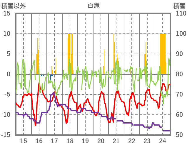 | 日 | 時 | 気温 | 降水 | 風向/風速 | 日照 | 積雪 | 降雪 |