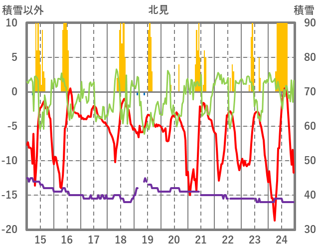 | 日 | 時 | 気温 | 降水 | 風向/風速 | 日照 | 積雪 | 降雪 |