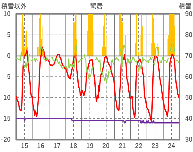 | 日 | 時 | 気温 | 降水 | 風向/風速 | 日照 | 積雪 | 降雪 |