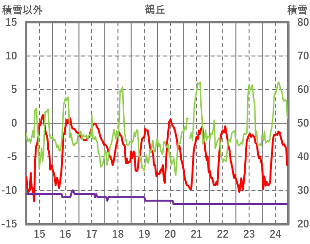 | 日 | 時 | 気温 | 降水 | 風向/風速 | 日照 | 積雪 | 降雪 |