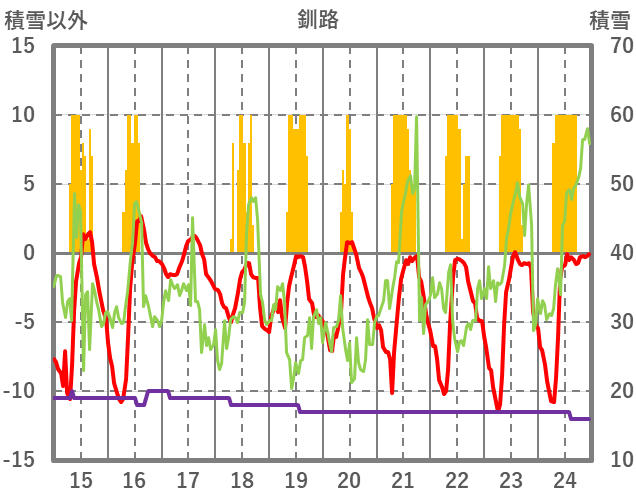 | 日 | 時 | 気温 | 降水 | 風向/風速 | 日照 | 積雪 | 降雪 |
