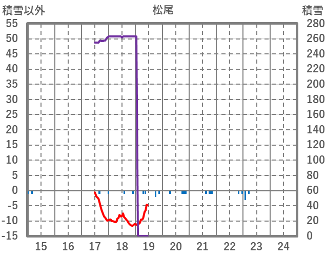 | 日 | 時 | 気温 | 降水 | 風向/風速 | 日照 | 積雪 | 降雪 |