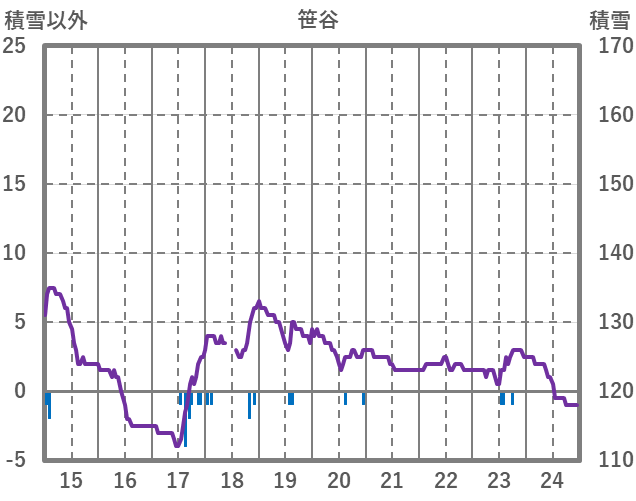 | 日 | 時 | 気温 | 降水 | 風向/風速 | 日照 | 積雪 | 降雪 |