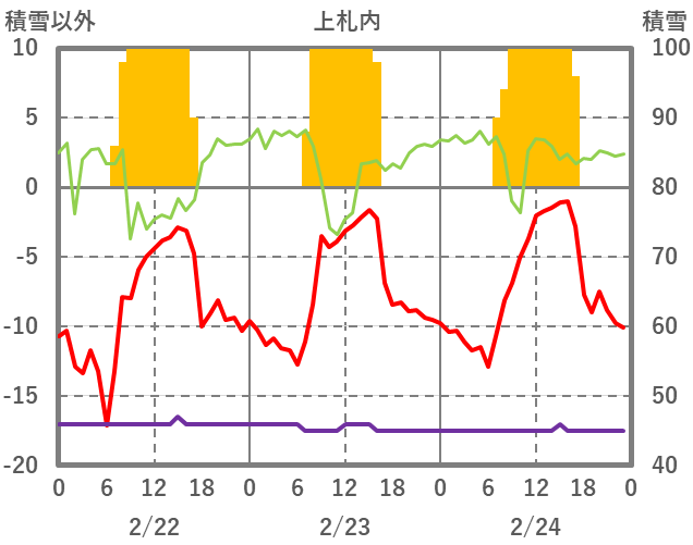 | 日 | 時 | 気温 | 降水 | 風向/風速 | 日照 | 積雪 | 降雪 |