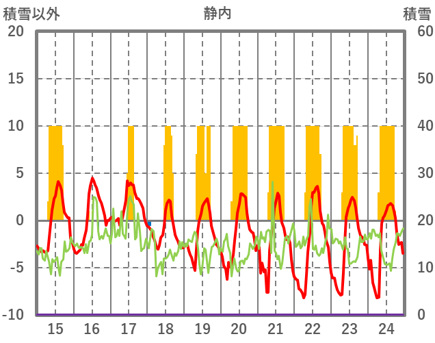 | 日 | 時 | 気温 | 降水 | 風向/風速 | 日照 | 積雪 | 降雪 |