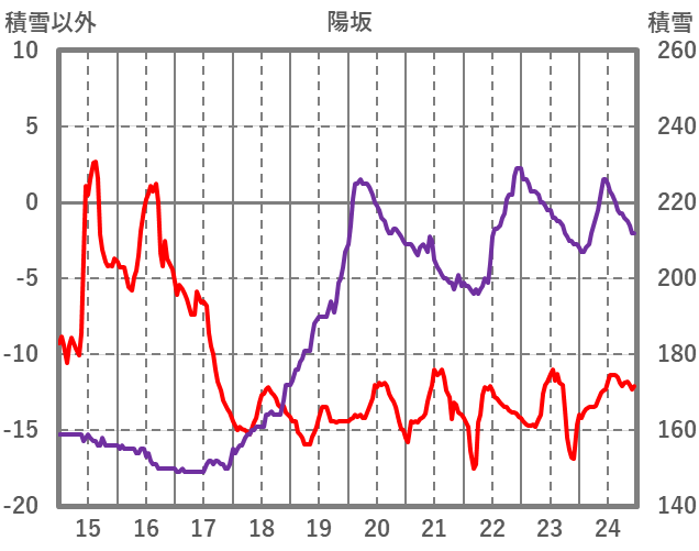 | 日 | 時 | 気温 | 降水 | 風向/風速 | 日照 | 積雪 | 降雪 |