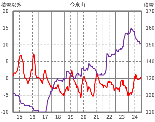 | 日 | 時 | 気温 | 降水 | 風向/風速 | 日照 | 積雪 | 降雪 |