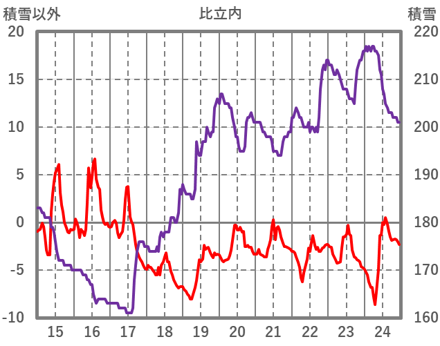| 日 | 時 | 気温 | 降水 | 風向/風速 | 日照 | 積雪 | 降雪 |