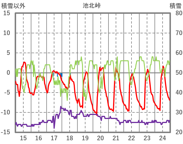 | 日 | 時 | 気温 | 降水 | 風向/風速 | 日照 | 積雪 | 降雪 |
