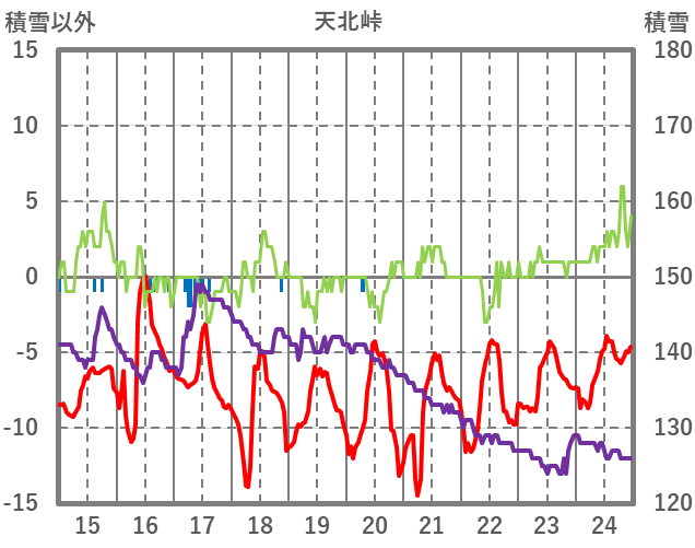 | 日 | 時 | 気温 | 降水 | 風向/風速 | 日照 | 積雪 | 降雪 |