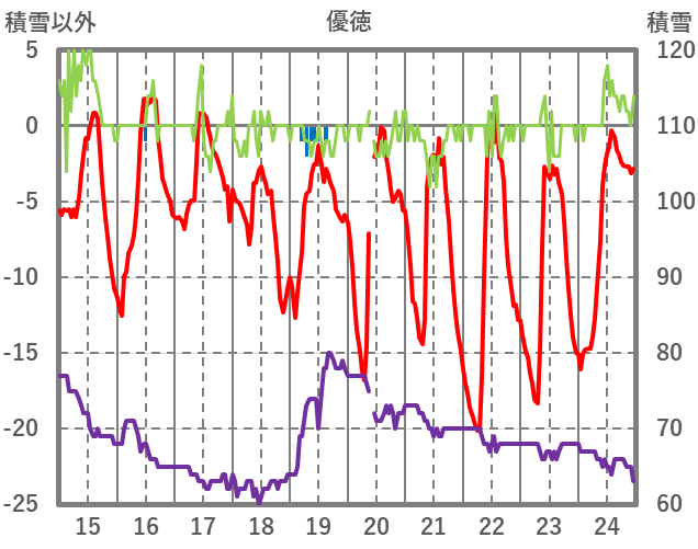 | 日 | 時 | 気温 | 降水 | 風向/風速 | 日照 | 積雪 | 降雪 |