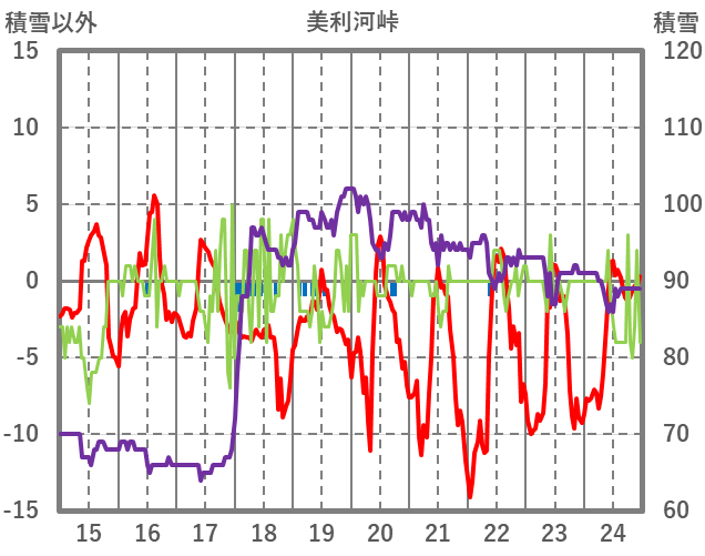 | 日 | 時 | 気温 | 降水 | 風向/風速 | 日照 | 積雪 | 降雪 |