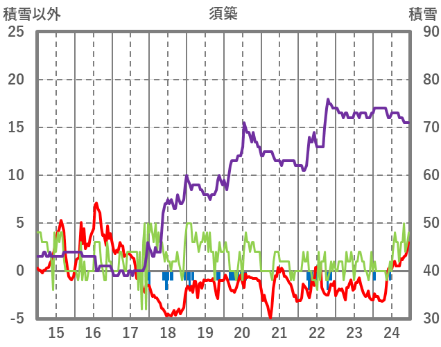 | 日 | 時 | 気温 | 降水 | 風向/風速 | 日照 | 積雪 | 降雪 |