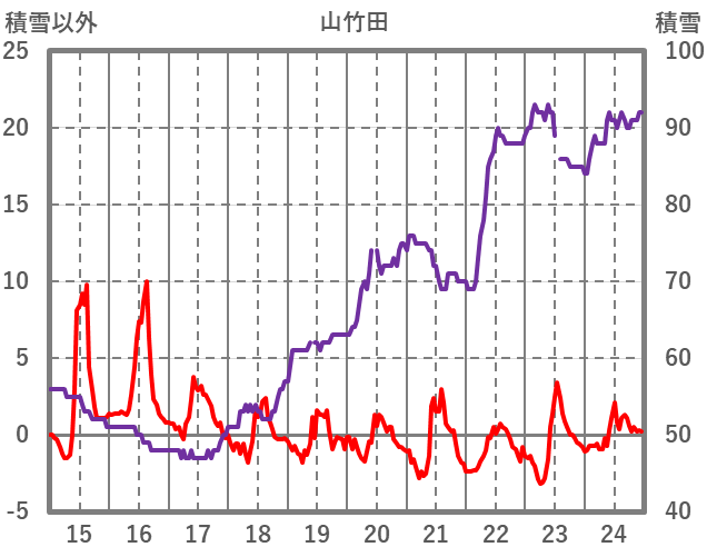 | 日 | 時 | 気温 | 降水 | 風向/風速 | 日照 | 積雪 | 降雪 |