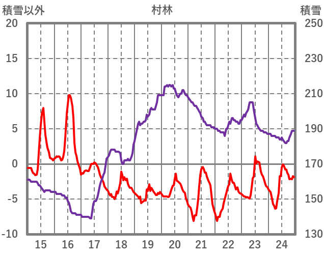 | 日 | 時 | 気温 | 降水 | 風向/風速 | 日照 | 積雪 | 降雪 |