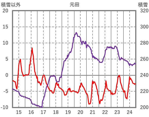 | 日 | 時 | 気温 | 降水 | 風向/風速 | 日照 | 積雪 | 降雪 |