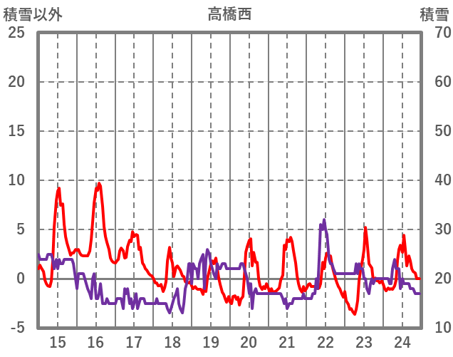 | 日 | 時 | 気温 | 降水 | 風向/風速 | 日照 | 積雪 | 降雪 |